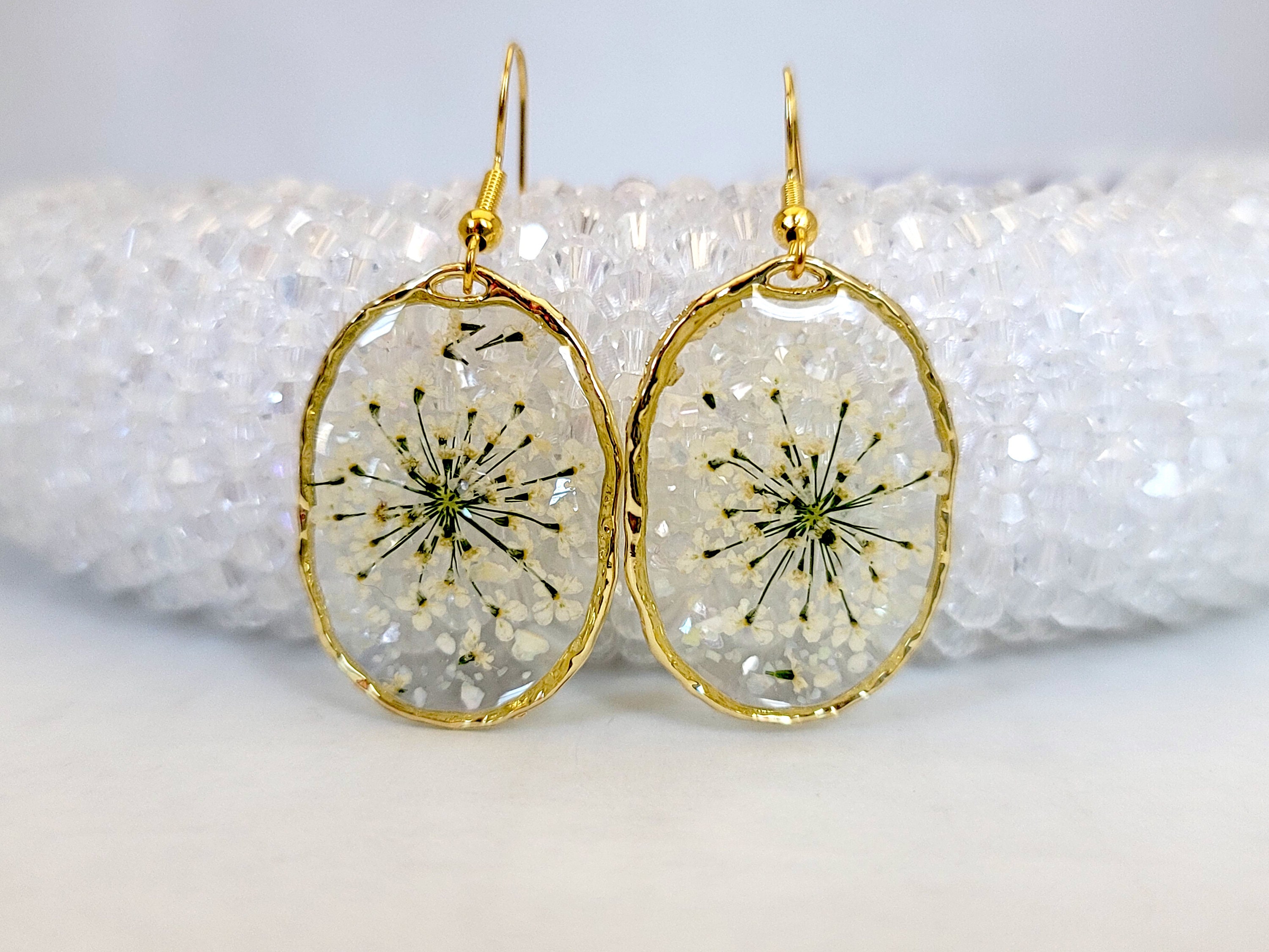 Handmade Dry Pressed Flower Resin Earrings Gold Oval Dangle Jewelry Flower Earrings Resin Earrings Real Flower Resin Drop Earrings Etsy