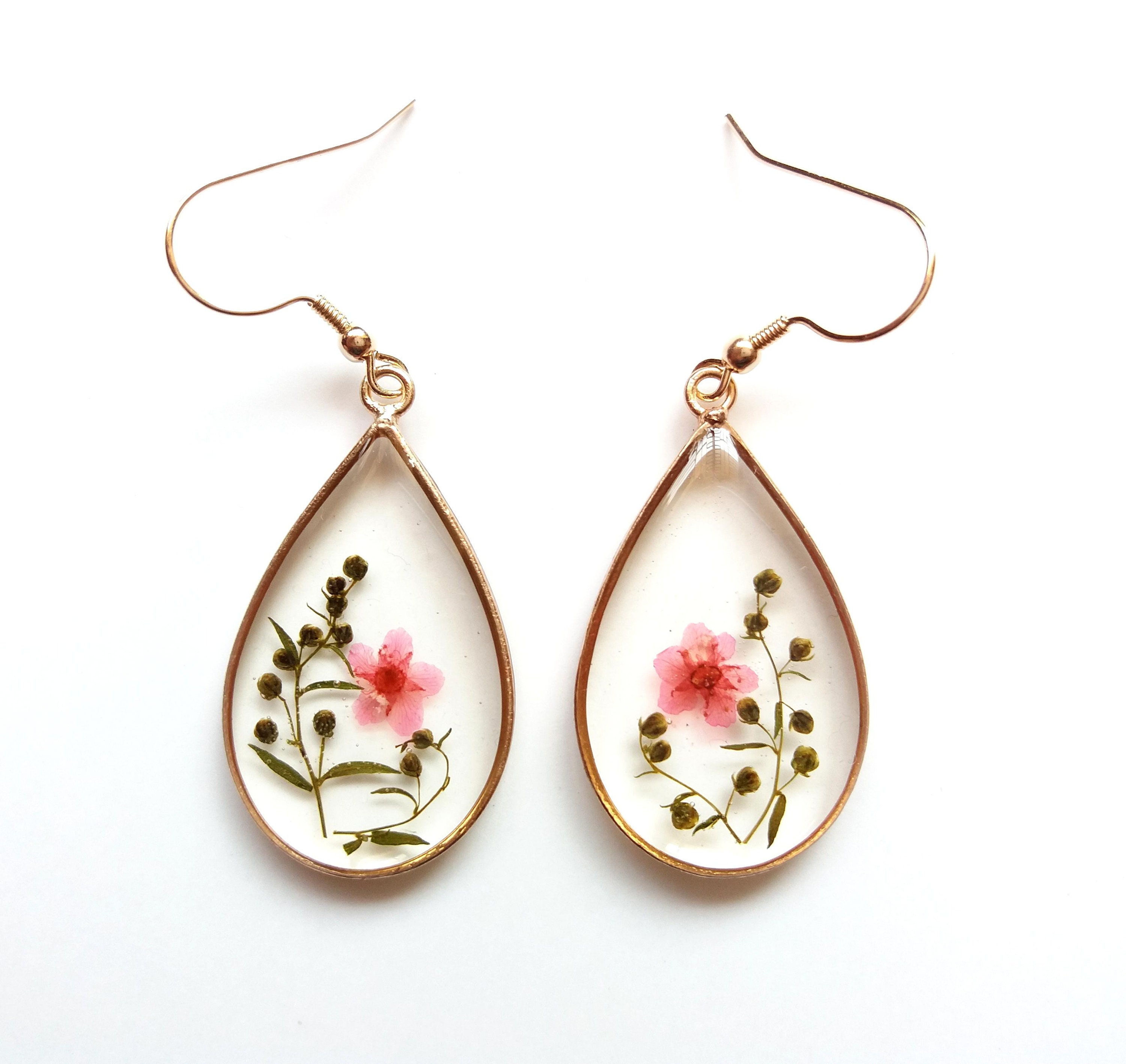 Flower Resin Earrings Resin Jewelry Pressed Flower Jewellery Botanical Earrings Flower Earrings Christmas Gift With Natural Touch Etsy